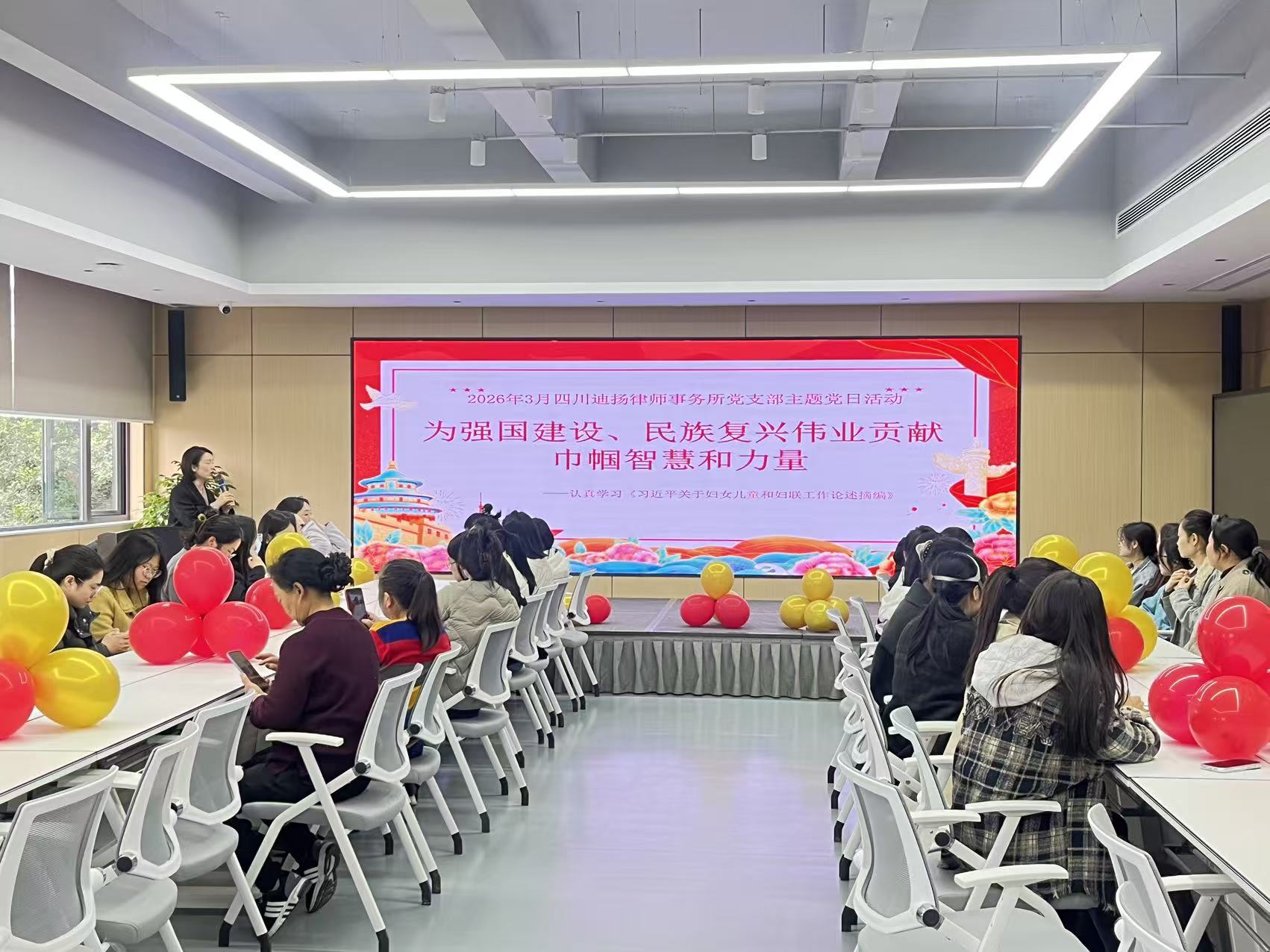3月6日下午,迪扬律所(成都本部)全体女员工、党支部女党员、入党积极分子齐聚一堂,特邀男员工倾情参与,在党支部引领下凝聚巾帼力量,在欢声笑语中共度佳节。